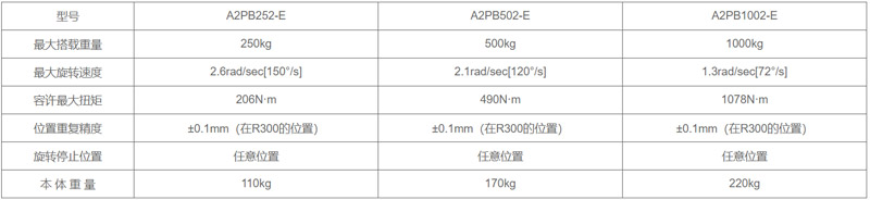 联系我们从最小的25kg到最大的1000kg,中间一共6种机型;可通过机器人的示教盒进行操作,可与机器人同时进行示教工作;采用的是AC伺服马达和无背隙减速机,因此可以得到和机器人同样的高精度;与机器人配套使用时,可以实现协调动作(协调软件选购)。